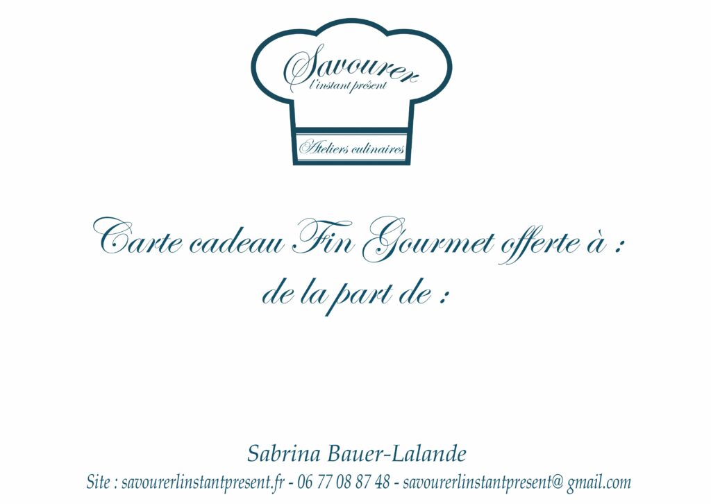 Une parenthèse gourmande rien que pour vous ou pour l’un de vos proches : votre atelier culinaire vous attend sous la forme d’une carte cadeau :
